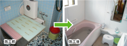 浴室を増築して壁も一新。工事中も不自由ありませんでした。(株式会社「水工房」) |
